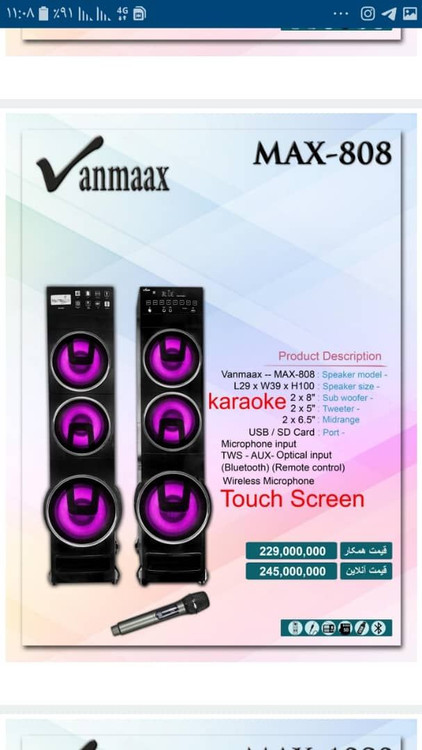 اسپیکر خانگی وان مکس مدل MAX‑808: اوج قدرت صدا و امکانات پارتی باکس حرفهای اسپیکر خانگی وان مکس مدل MAX‑808 تعریف جدیدی از یک سیستم صوتی خانگی ایستاده و پارتی باکس تمامعیار است. این مدل با ابعاد (ارتفاع ۱۰۰، عرض ۳۹ و عمق ۲۹ سانتیمتر)، طراحی مدرن و جسورانهای را در دکوراسیون خانه شما به نمایش میگذارد و همزمان، قلب تپنده هر مهمانی خواهد بود. این دستگاه با تمرکز بر کیفیت ساخت بالا و ارائه امکانات سرگرمی کامل، برای کاربرانی طراحی شده که به دنبال تجربه صوتی همهجانبه هستند.